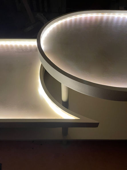 This project was for Willow & Pine's booth inside The Painted Tree Marketplace in Franklin, TN. Consisting of two freestanding custom display shelves and a unique raised center display. All pieces are backlit with LEDs for optimal product visibility.
