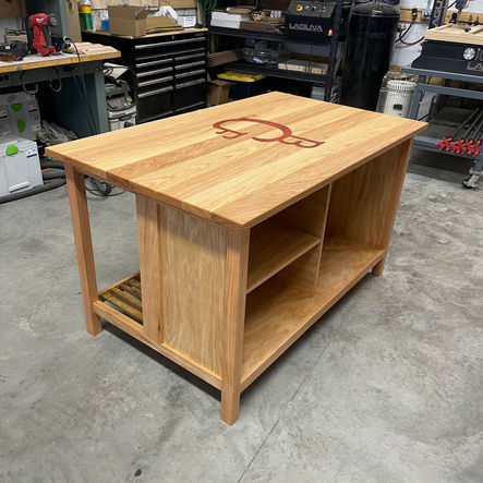 This project was for Bear Creek Farm's farm store located in Thompsons Station, TN. Consisting of three shelving units and a cash wrap made from solid red oak and genuine tobacco sticks.